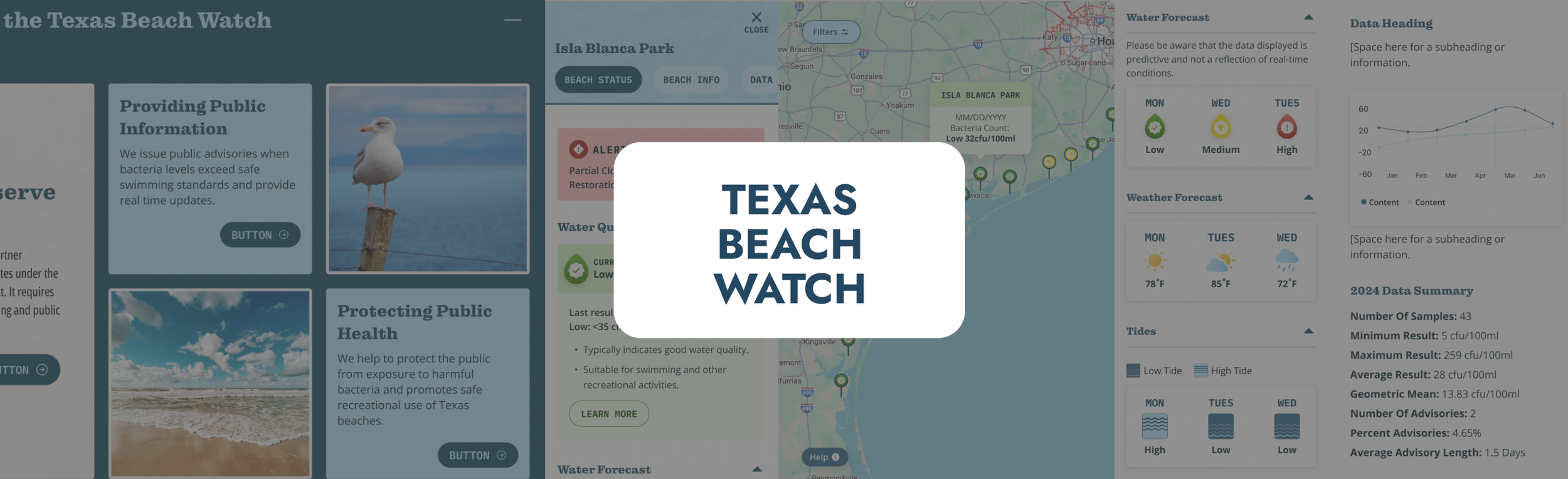 We transformed the Texas GLO's inaccessible water quality map into a scalable architecture of individual, indexable beach pages, ensuring life-saving public health alerts could be easily tracked, shared by the media, and accessed by the public.