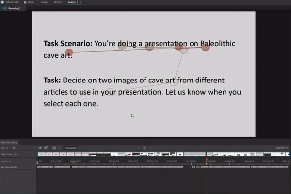 My team used Tobii eye tracking software to conduct the usability testing. Eye tracking technology uses light waves to trace eye movement of the pupil, the darkest part of the eye, as it moves across a webpage.