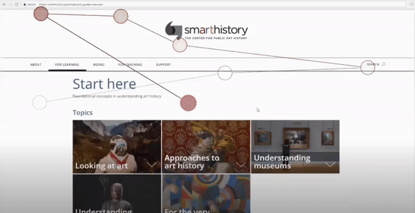 Smarthistory, a not-for-profit with support from academic contributors, has become the world's most visited art history resource. They are the official provider of art history for khanacademy.org and support AP and A-level art history and students, instructors, and lifelong learners everywhere. Smarthistory supports the ethical and open sharing of cultural knowledge. I worked with a team of 4 UX Researchers to identify how students and teachers navigate sourcing content on the Desktop site in the For learning prehistoric and Non European pages. We used Tobii eye-tracking technology, which detects a person's eye's presence, attention, focus, and position. From our testing and digital analytics, we identified opportunities for navigation improvement and content labeling.
