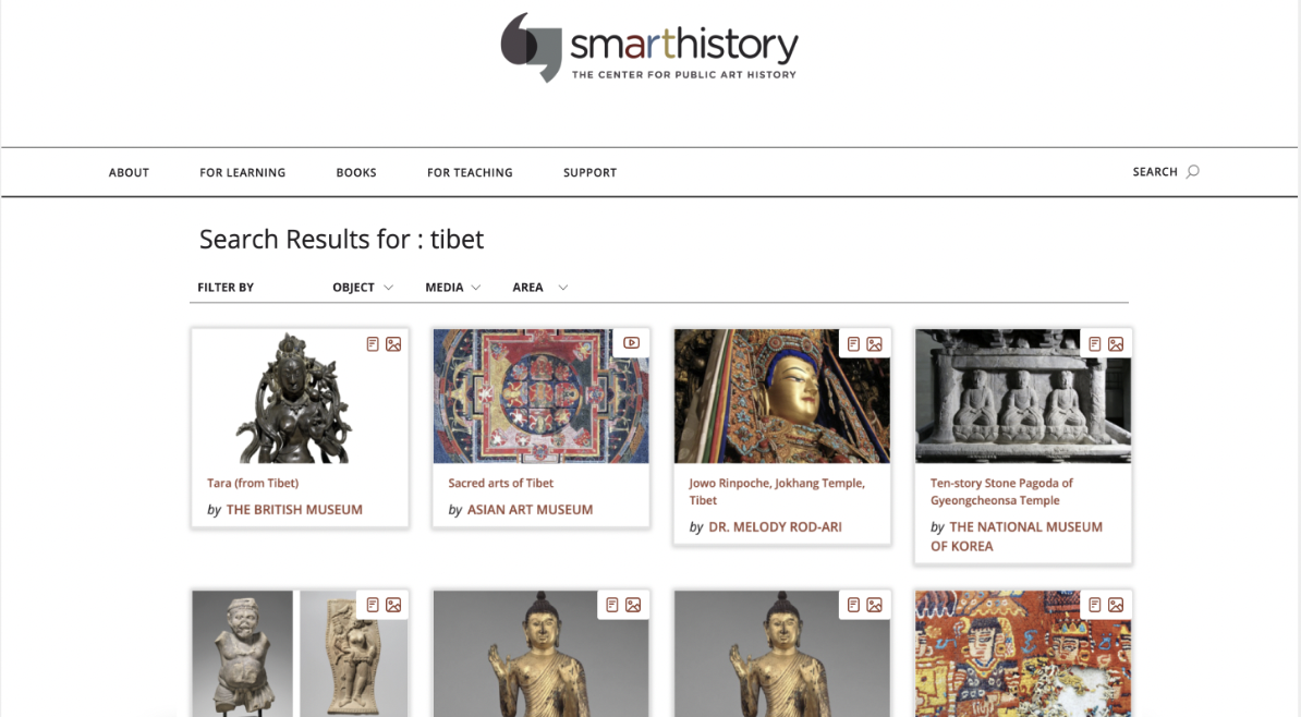 Task 2: You’re teaching a session of introduction to Asian Art and want to assign the class a video to watch from Smarthistory. Find a video to show your class about the sacred arts of Tibet.