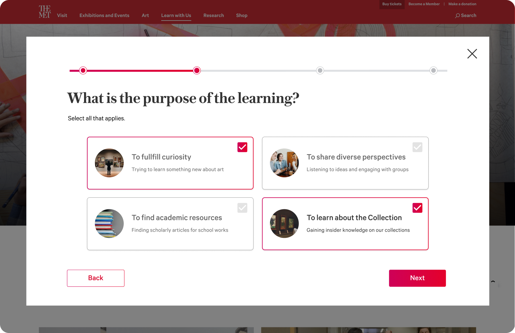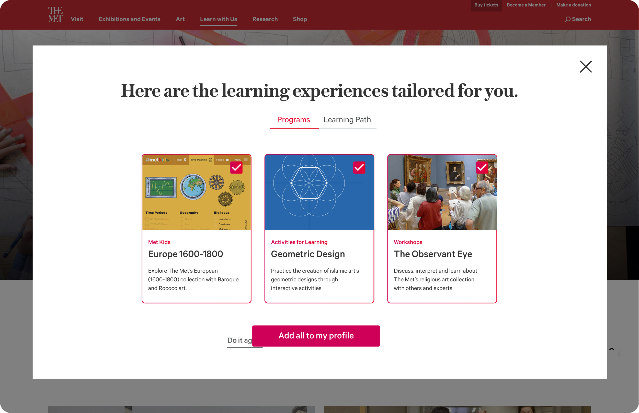 Allows learners to track their progress across The Met’s Collections